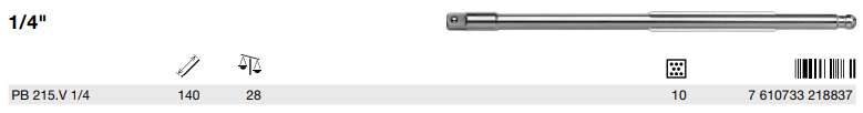 PB 215 V 1/4 Interchangeable blade for 1/4" PB 215 A, 8215 A, DigiTorque and MecaTorque handles